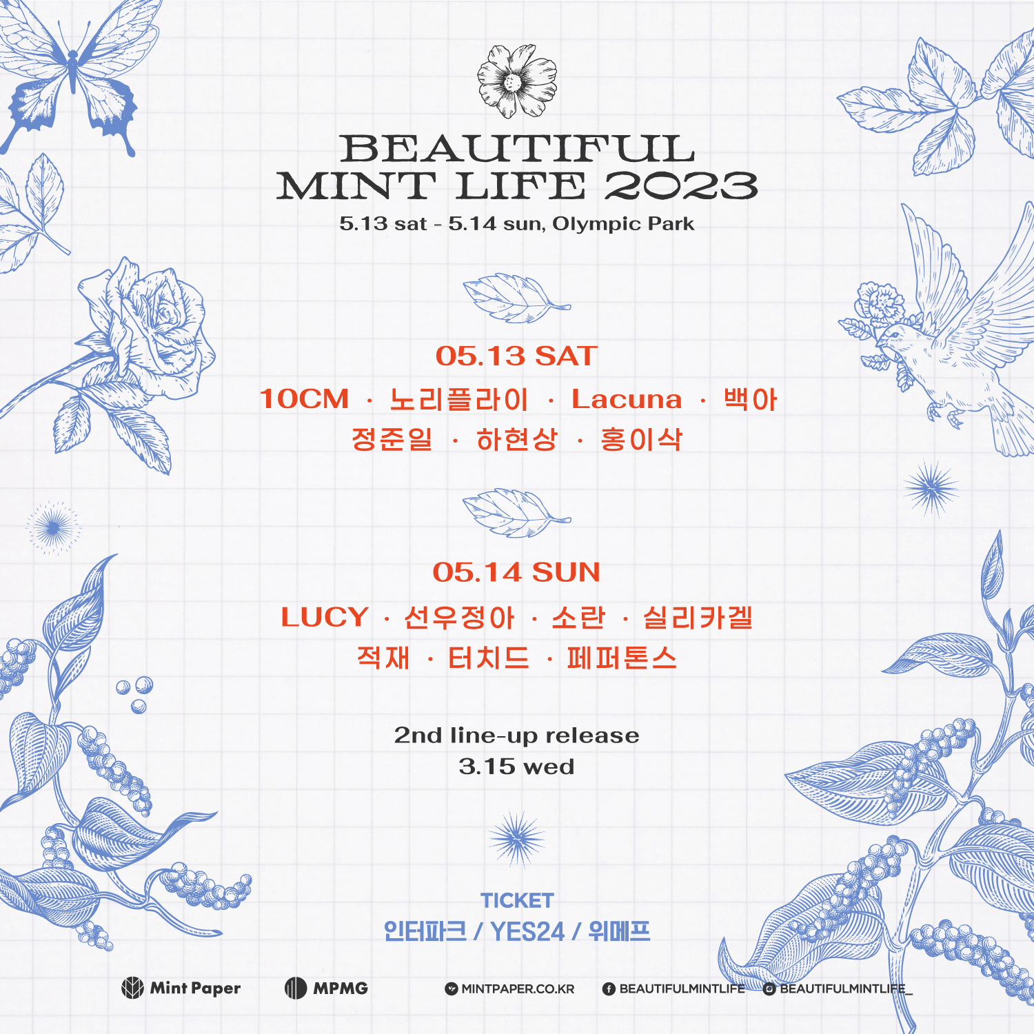 봄 음악 페스티벌 '뷰티풀 민트 라이프 2023'이 5월 13일, 14일 2일간 서울 송파구 올림픽공원에서 개최 됩니다.