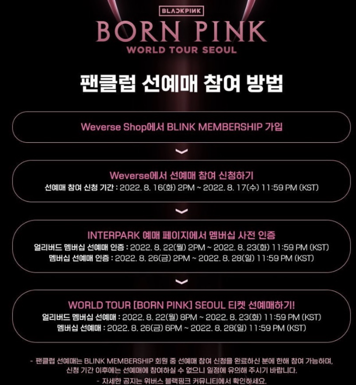 팬클럽 선예매 참여 하기 위해서는 BLINK MEMBERSHIP 가입 후 Weverse에서 선예매 참여 신청을 해야 합니다.