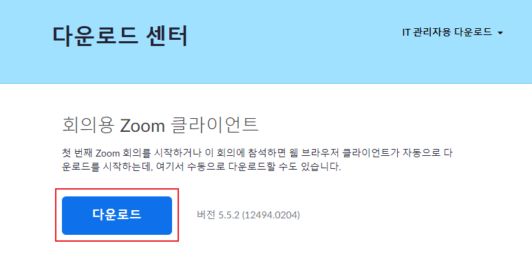2. 다운로드 센터 - 회의용 ZOOM 클라이언트 다운