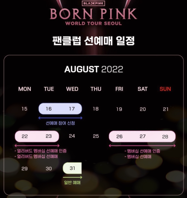 BLINK MEMBERSHIP 선예매 : 8월 26일(금) 오후 6시 ~ 8월 28일(일) 오후 11시 59분까지 진행