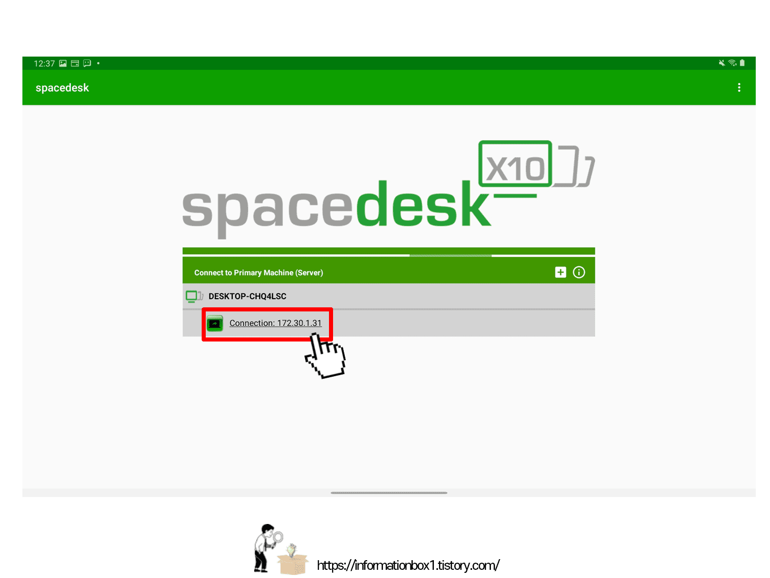 4.spackdesk 어플에 접속하여 자신의 컴퓨터 ip 클릭 (갤럭시탭과 컴퓨터가 동일 와이파이로 되어있어야 합니다.)
